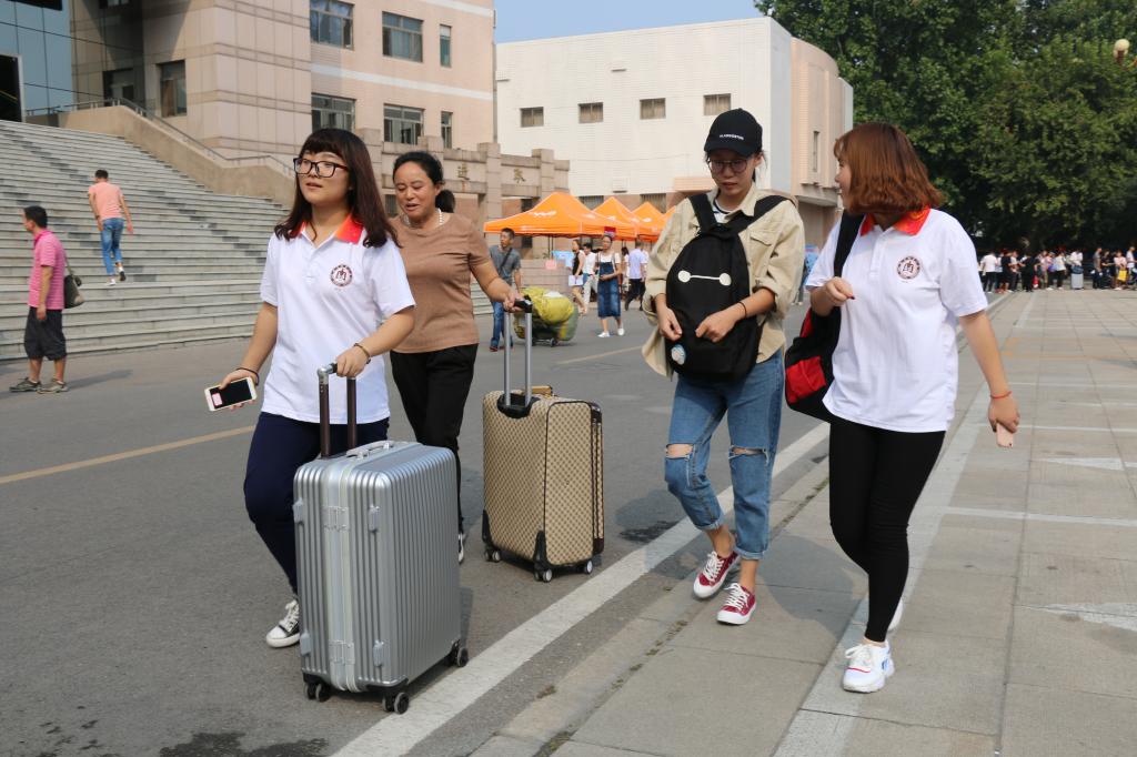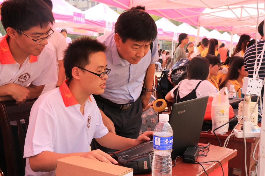 2017年迎新工作在孔子文化广场正式拉开帷幕,学院党委副书记季中以及辅导员老师们亲临指导。
