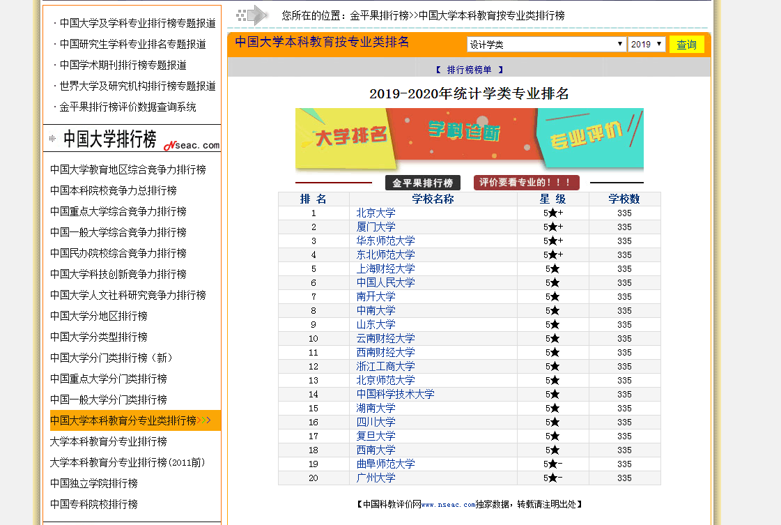 金平果排行榜>>中国大学本科教育按专业类排行榜,网址链接: www.nseac.com/eva/CUDE.php?DDLThird=510712&DDLyear=2019