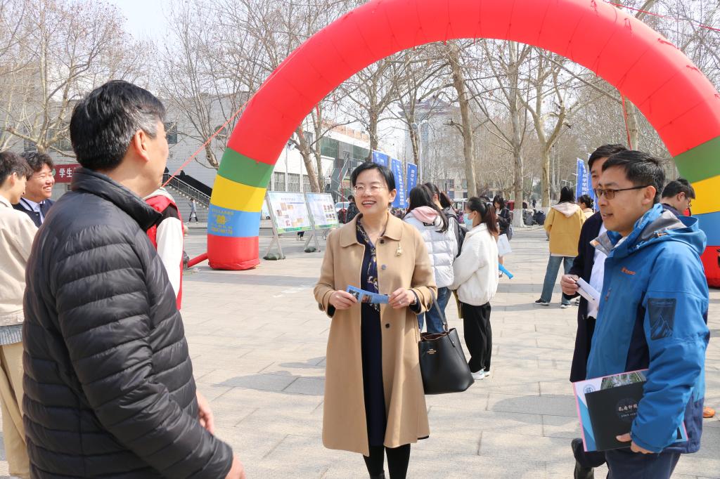联合数学与科学学院、网络空间安全学院在明心扬帆广场联合举办2023届毕业生招聘会。学生工作处处长姜美颖、各学院书记、院长亲临会场并与用人单位和毕业生进行交流。