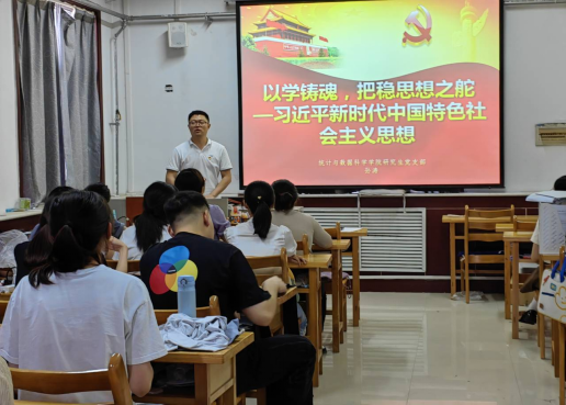 5月19日下午,研究生党支部书记孙涛以“以学铸魂,把稳思想之舵”为主题,面向学院研究生党支部全体党员开展理论宣讲。
