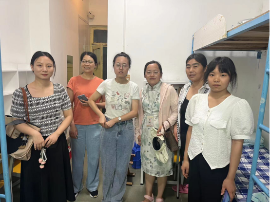 党委书记刘明海、党委副书记季中、团委书记李宴美、新生辅导员李祥敏、李玲走访2023级新生宿舍,看望慰问新同学。