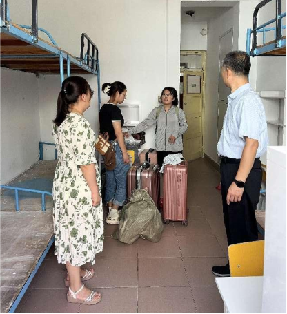 走进新生宿舍,领导老师们对大家的到来表示热烈欢迎和亲切问候,详细询问了新生们对新环境的适应情况,并嘱咐新生们注意宿舍卫生和安全,严格遵守宿舍管理规定,营造一个良好的住宿与学习环境,鼓励同学们要尽快适应大学生活,同学之间要团结互助,珍惜学习时光,认真学习专业知识,做一名信念坚定、志向远大、乐观向上、积极进取的新时代大学生。亲切的问候展现出学院的人文关怀,细致的关心拉近了师生距离,真挚的鼓励消除了新生的不适。