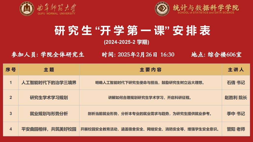 于2025年2月26日在综合楼606室隆重召开了面向全体研究生的“开学第一课”教育大会。